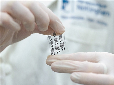 研究团队在贴片上安装了多个微型传感器形成“井字格”监测网,可以实现移植皮肤全域监测,能及时精准锁定异常区域,并根据医学阈值判断异常等级。“用精准的数据说话,可以让医生及时采取干预措施。”罗洁说,“这类柔性贴片可以温和且安全地从皮肤上移除,即使是在皮肤较为脆弱的情况下,也不会对移植皮肤造成伤害。”
